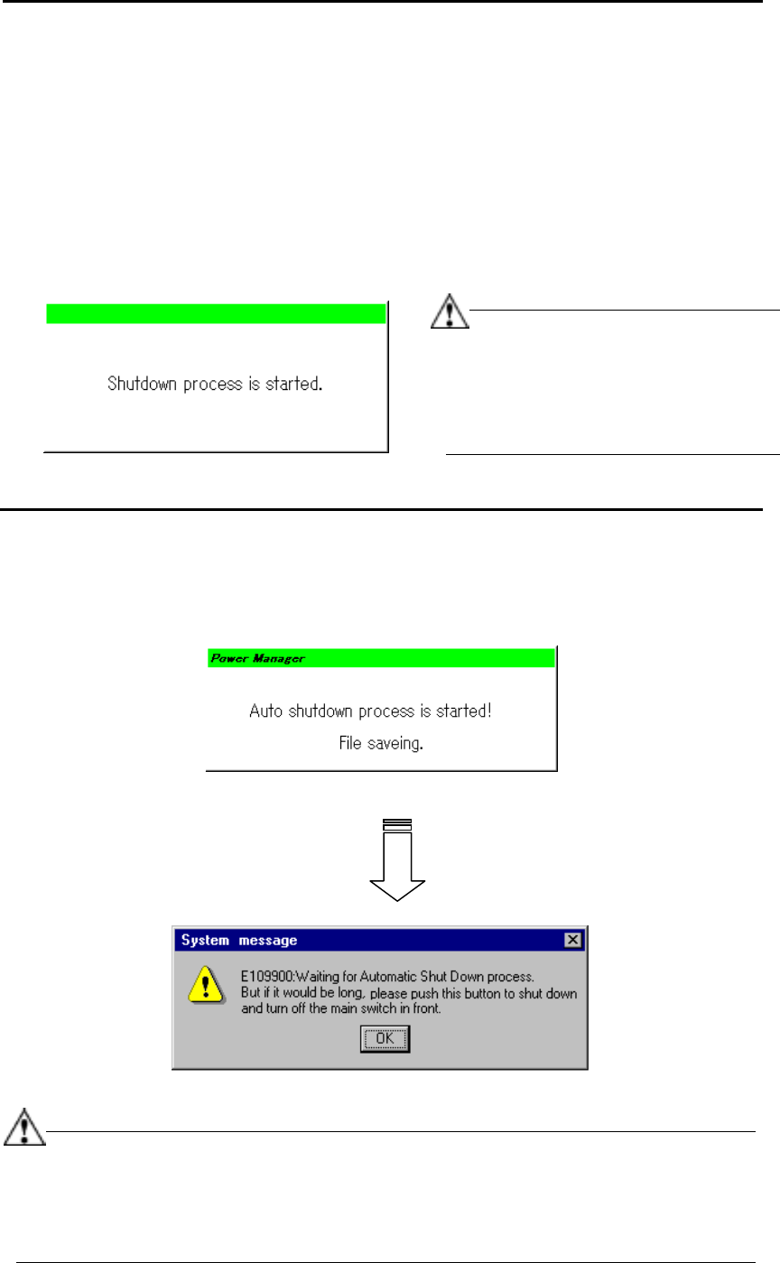 the machine displays the following dialog box, and then starts the shutdown