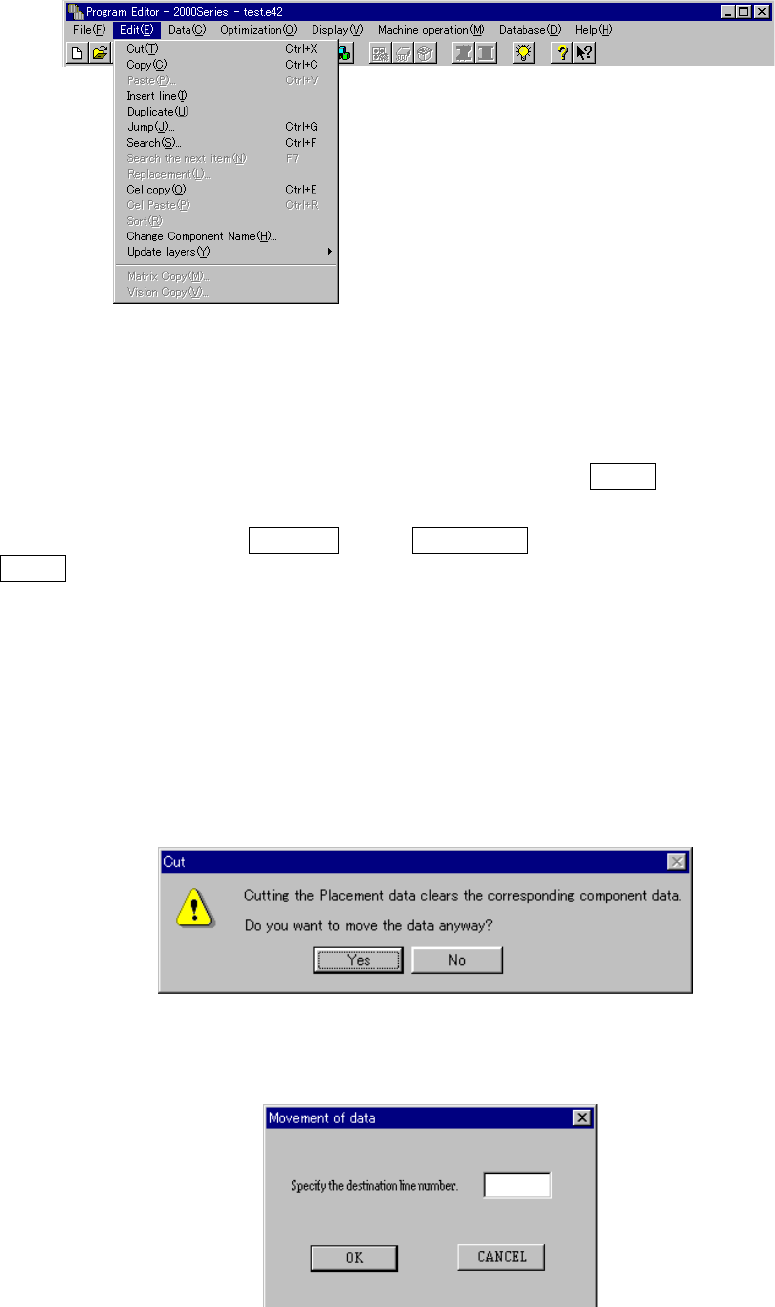 and select this [Cut] command, the following inquiry message appears on the screen.