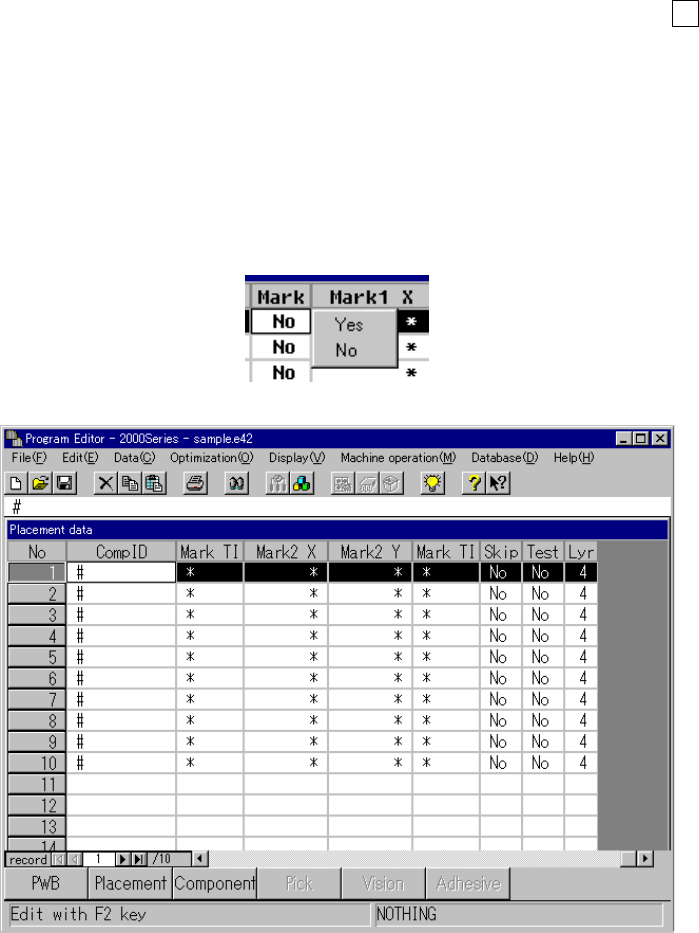 default for the mark. To change the default setting, using the Edit key ( F2 key)