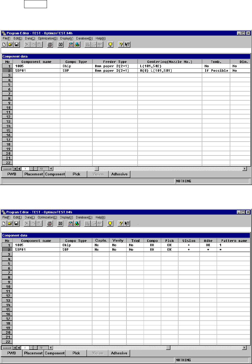 Component data is completed. When you move the highlight cursor, and press
