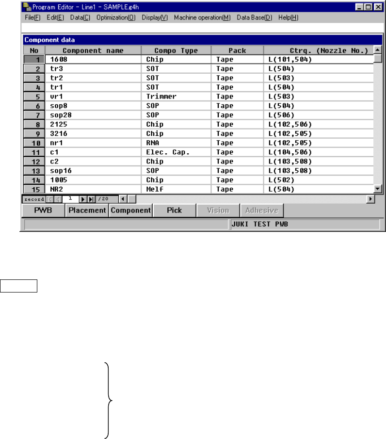 4 – 101 4.7.8 List w indow On the List window , t he summar y of two or more Com ponent data pieces is displayed in the f orm of a list on the scr een. T o display this List window , select the menu it em [Component list…