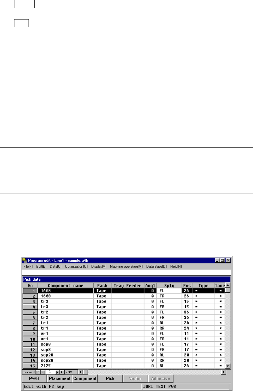 of machine. Therefore, be sure to check the component pick-up coordinates