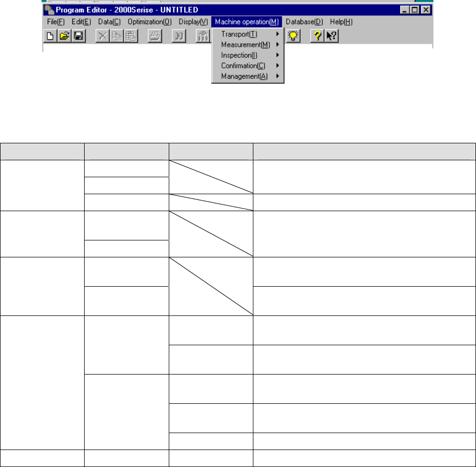 operation menu provides menu items corresponding to each action.