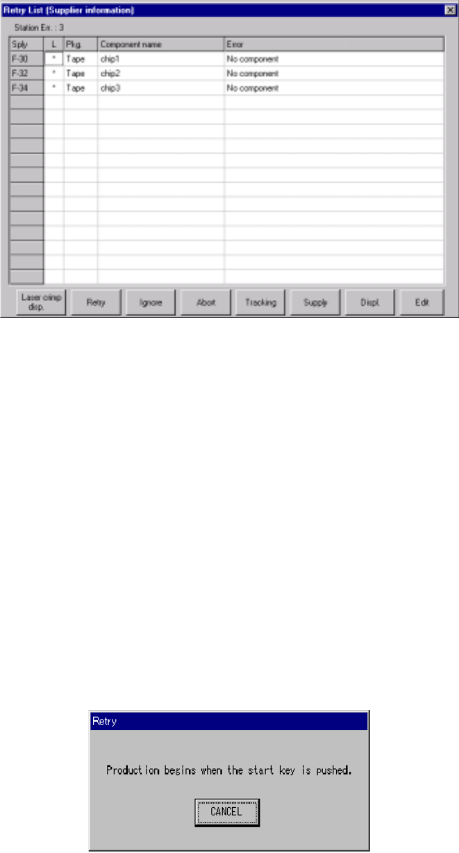Figure 6.3.2.1 Retry List display dialog box (Supplier information)