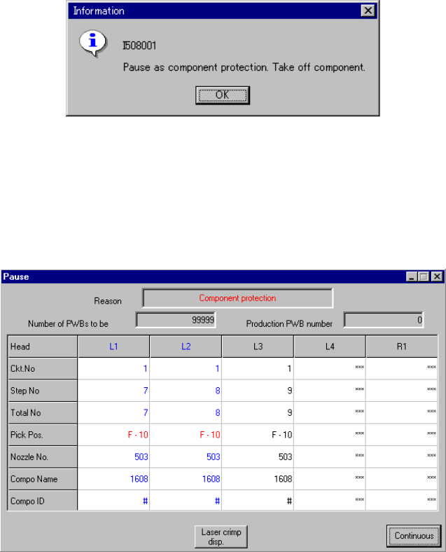 Figure 6.4.7.2 Pause dialog box due to component protection