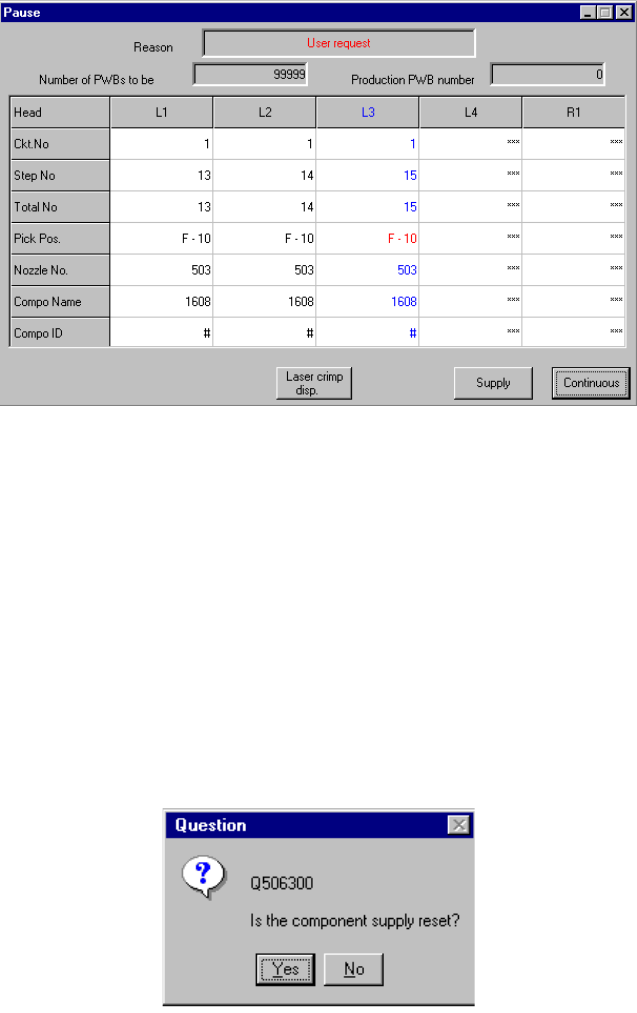 Figure 6.4.9.2 "Is the component supply reset?" (Confirmation) dialog box