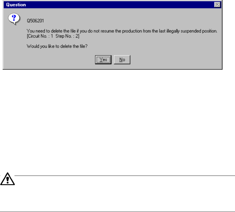 the current production was terminated abnormally, the following dialog box