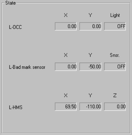 The X and Y coordinates and ON and OFF setting of the light are displayed
