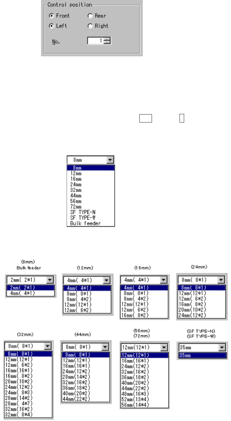 8 − 48 (3) Kind of f eeder W hen selecting “T ape feeding action” as the cont rol item , select the t ape width and feed pit ch fr om the combo box. This it em cannot be set when the control item “ Direct k nock act ion”…