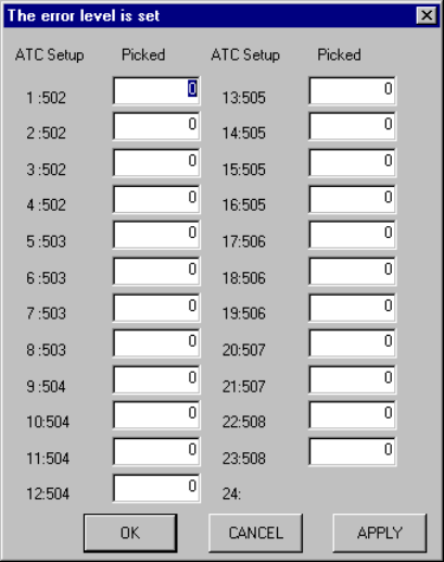 This screen allows you to set the error level.