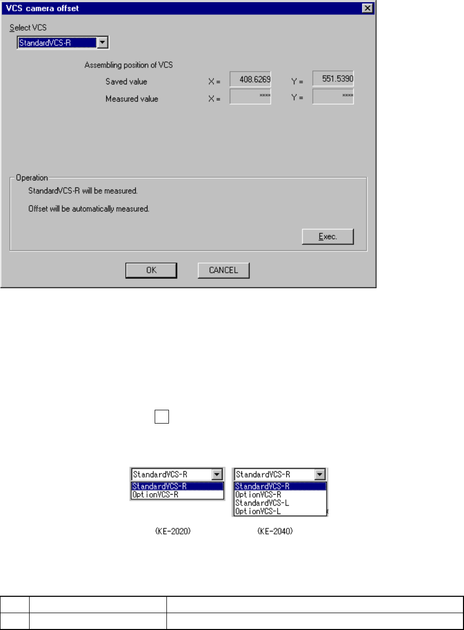 command on the displayed menu, the following “VCS camera offset” dialog box