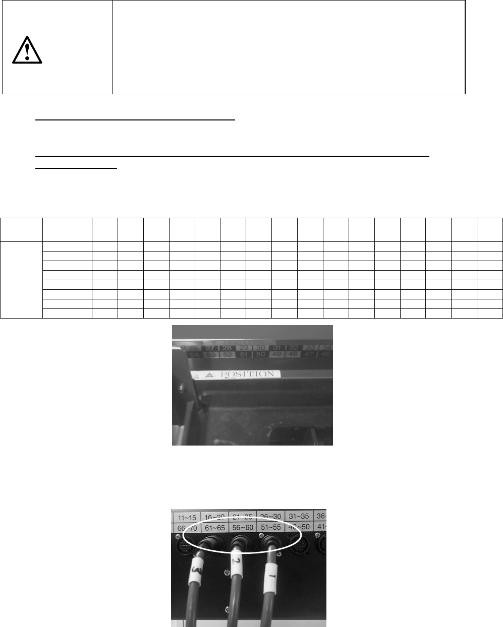 Attaching position (relation between the feeder bank number and the connector