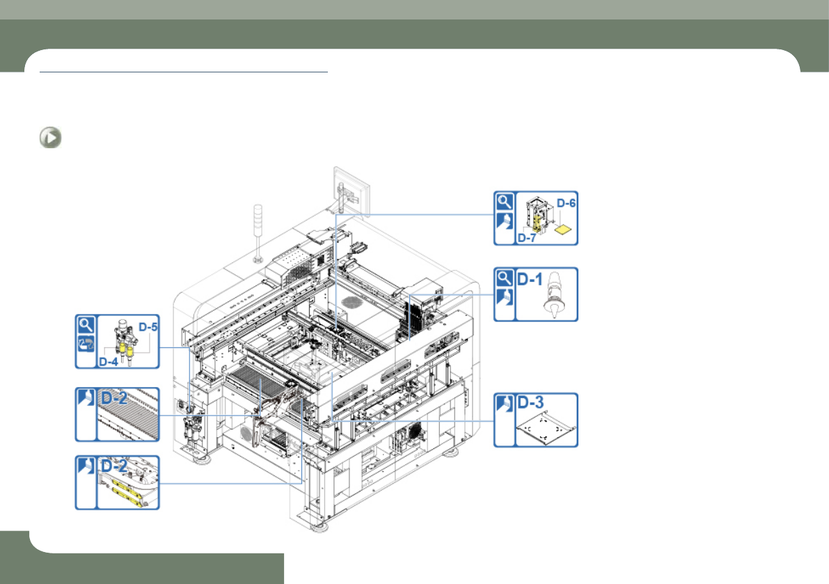 제 2 장 유지보수 점검 항목 Nex t Generation, Multi- Functi onal Placer DE CAN S1 Ma inte nan ce Ha nd boo k 2-1 일일 점검 항목 점검 항목 소모품 교환 주기 참고 사항 소요시간 점검 주기 No 점검 품목 점검 사항 도구 일일 D-1 Nozzle 점검 및 청소 에어건, 면봉, 에틸 알코올 2년 수시 점검 10분 D-2 Fee…