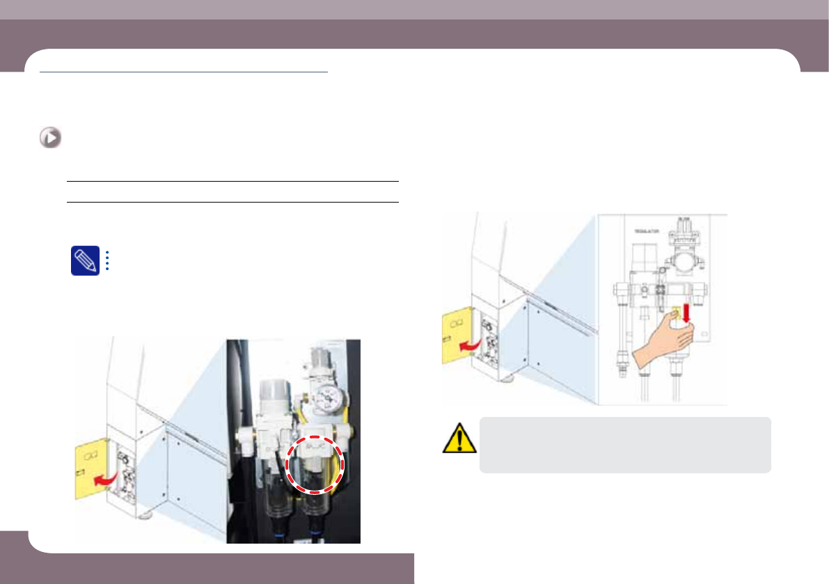 DE CAN S1 Ma inte nan ce Ha nd boo k 3-11 제 3 장 일일 점검 Nex t Generation, Multi- Functi onal Placer Air Filter 점검 및 교환 Step 5. 시계 반 대 방향으로 돌 려 용 기를 분 리 Step 6. Air Filte r 용기 에서 Filte r를 분리 하여 교체 Step 7 . "3. 비상정 지 해제…