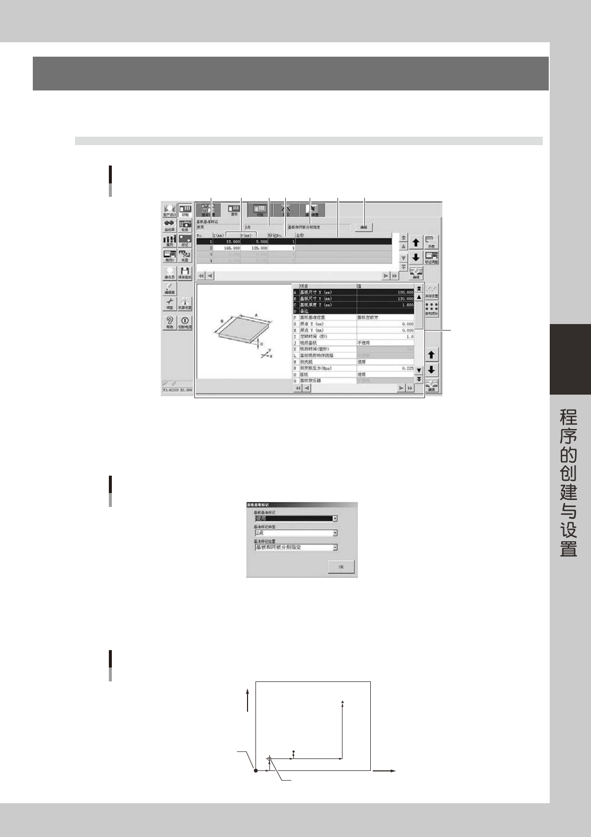 基板上需要设置的坐标有“原点 XY”、“基板基准标记”、“检查坐标”。