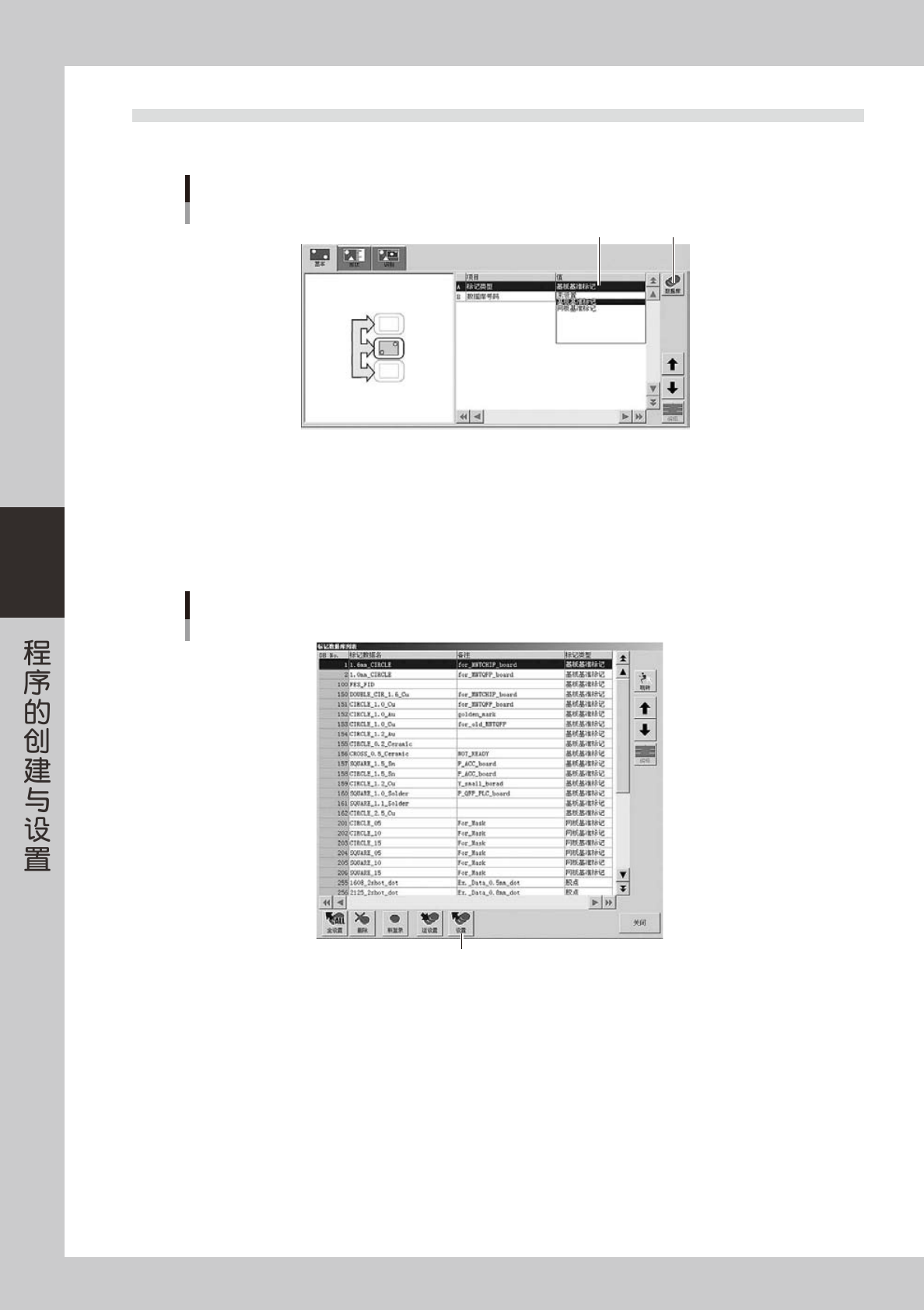 从数据库可以复制标记的参数值。按 [ 数据库 ] 按钮,打开“标记数据库列表”画面。选择想要复制的标记数据,按 [ 设置 ]