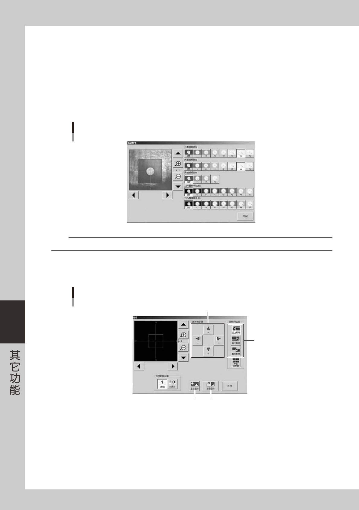 想要使基准位置的十字光标 ( 粉红色 ) 从红框中心偏移时使用此按钮。