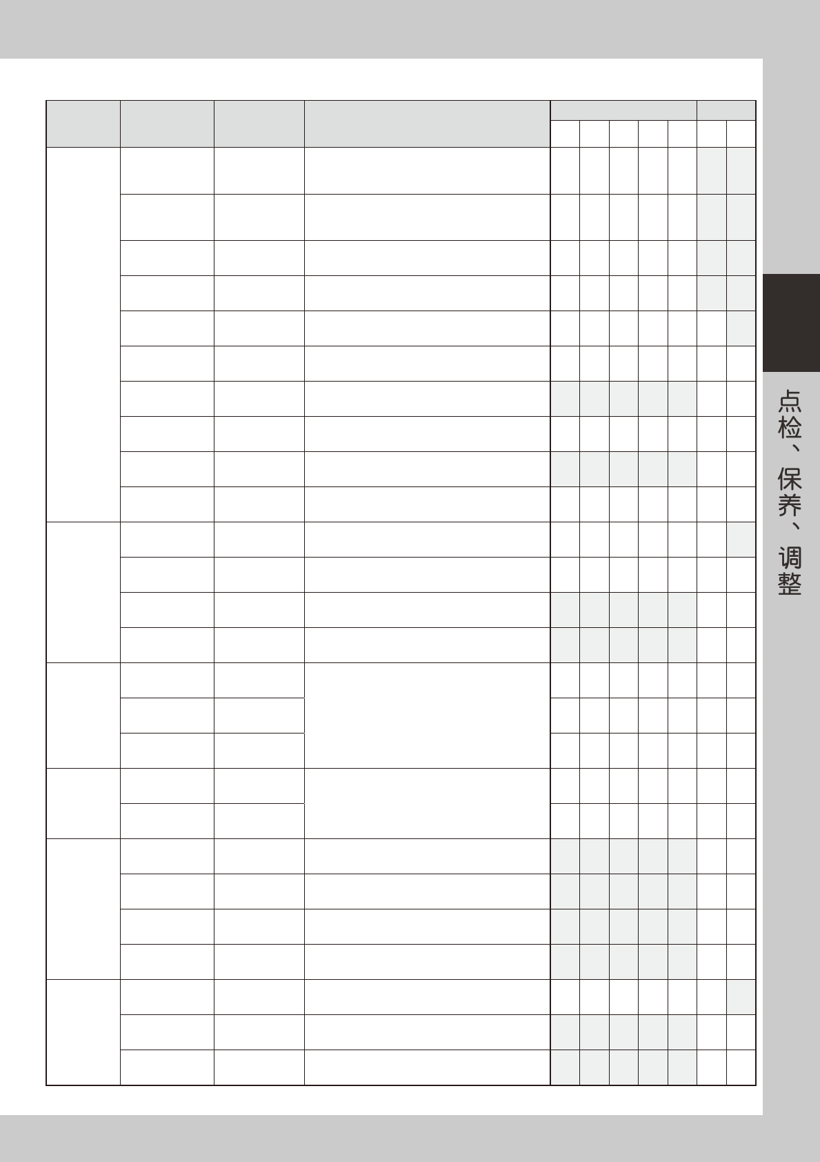 进行定期点检时,建议使用点检表。点检表的内容为每周或每月必须点检的内容,不包含本章前述“日常点检”