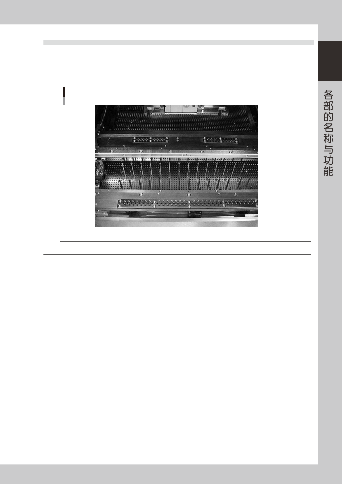 在印刷位置从下方支撑基板用的夹具,本印刷机备有顶针 ( 矩阵式顶针 )。( 平面支撑夹具为选配 )