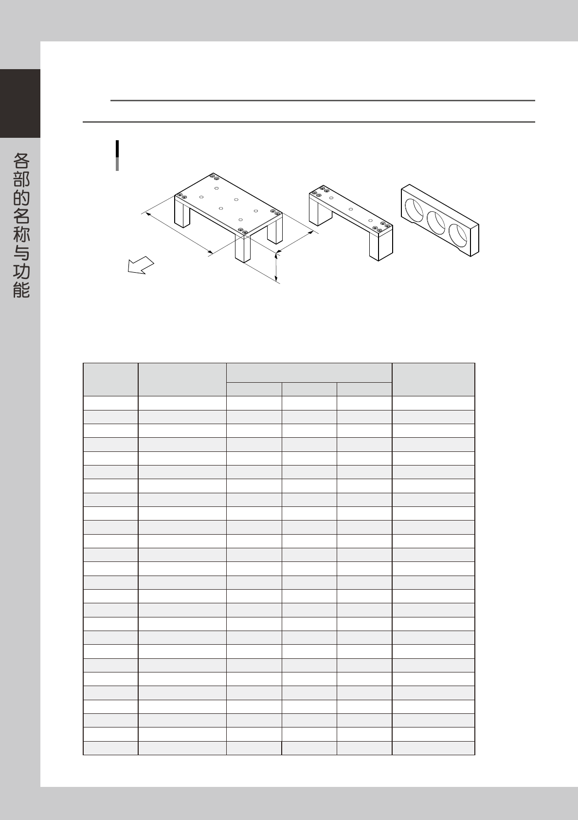 如下表所示,不同尺寸的基板可在 W 方向排列 A 〜 C 平面支撑夹具的个数不同,同时使用顶针时,可使用的顶针