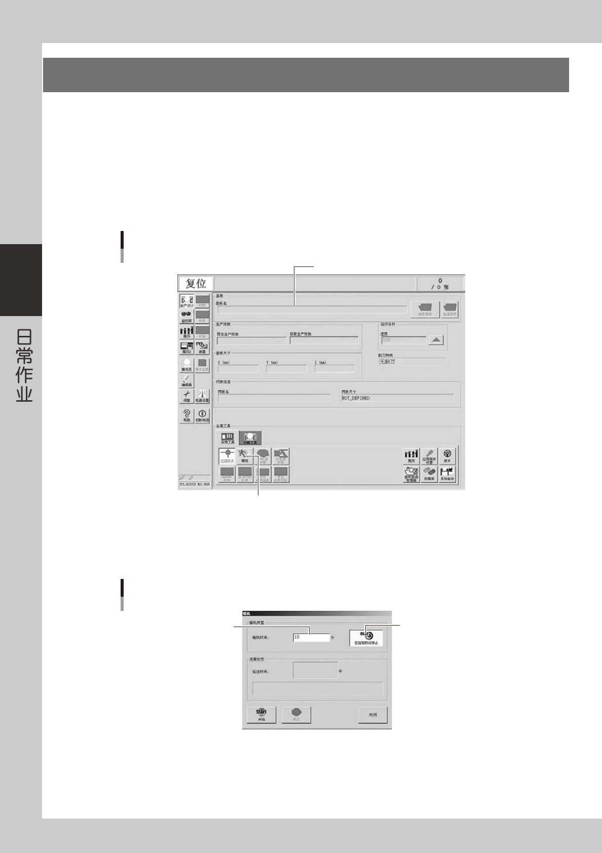 有关作业前的点检项目和开机方法,参阅“第 2 章 基本操作”。