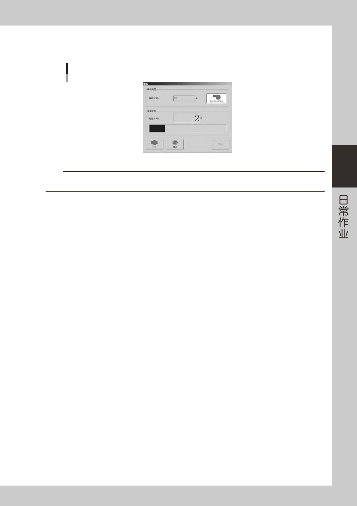 到达 Step3 中指定的时间后,印刷机自动停止暖机运行 ( 如果想要中途停止暖机运行时,按 [ 停止 ] 按钮 )。