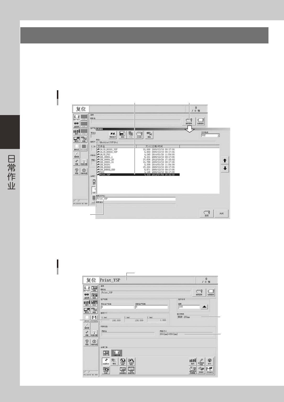 2. 将光标移至想要生产的基板名行,按 [ 选择 ] 按钮。读入所选基板程序。