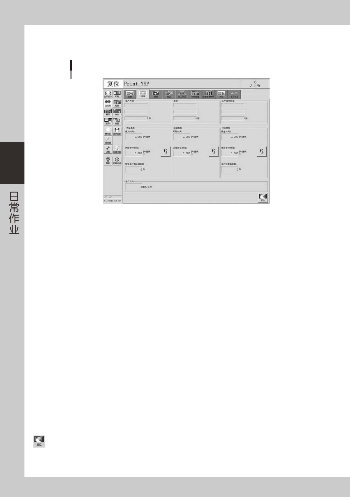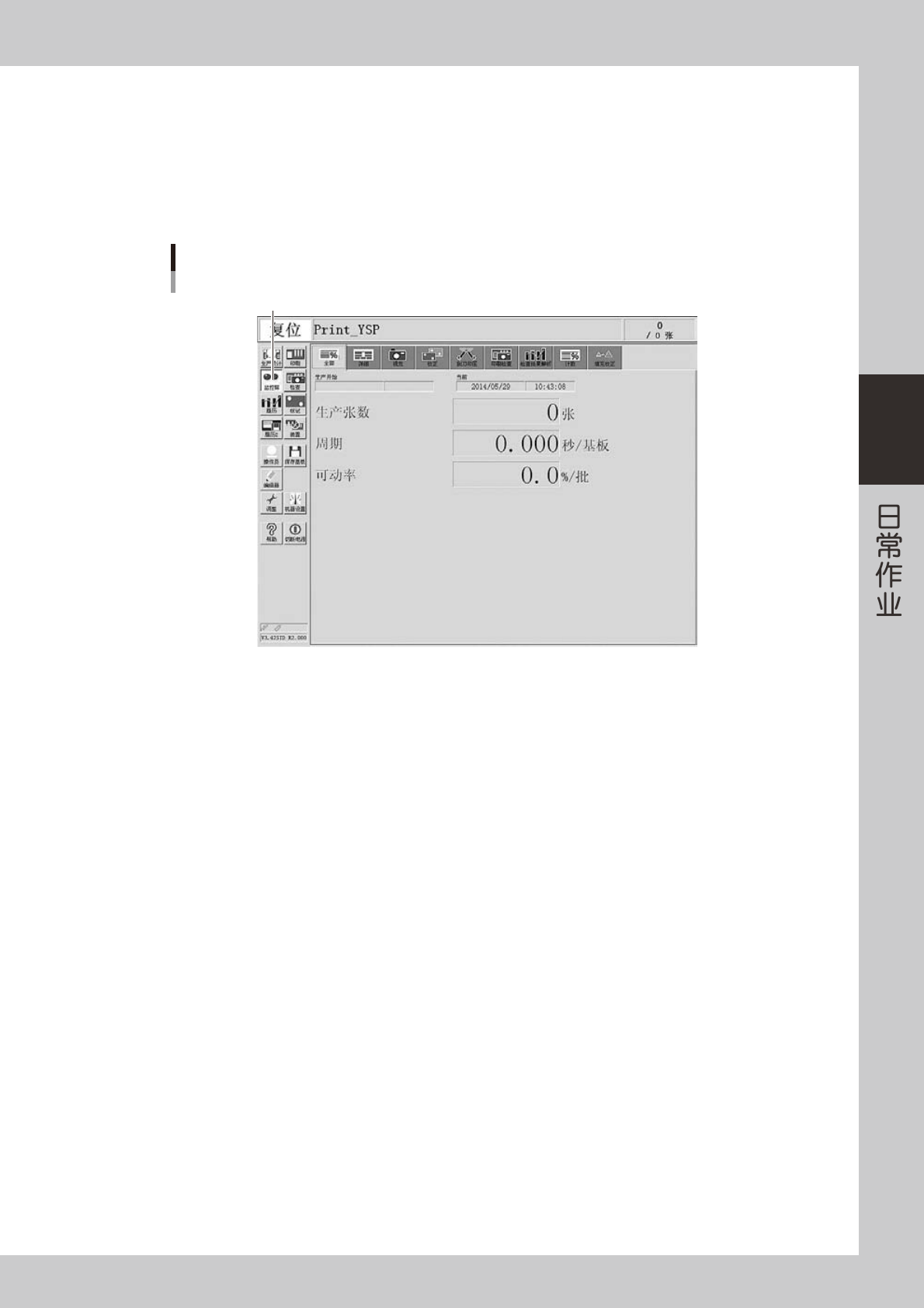 显示生产开始的时间 ( 选择完基板的时间 )。张数通常设置为 0。