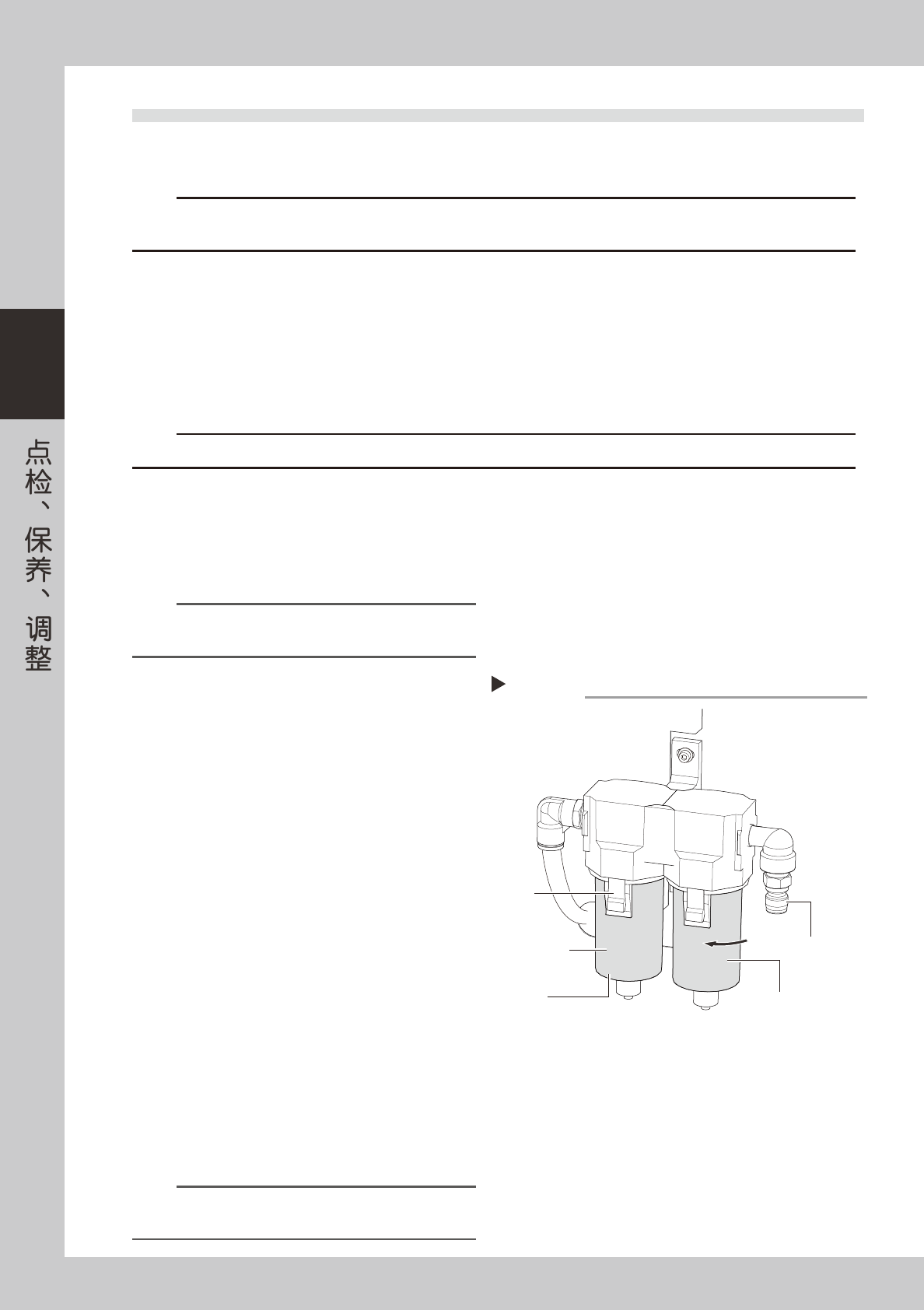 下面,介绍过滤器的点检、清洁方法。( 邻近空气连接器的是空气过滤器,稍远的是油雾过滤器。)