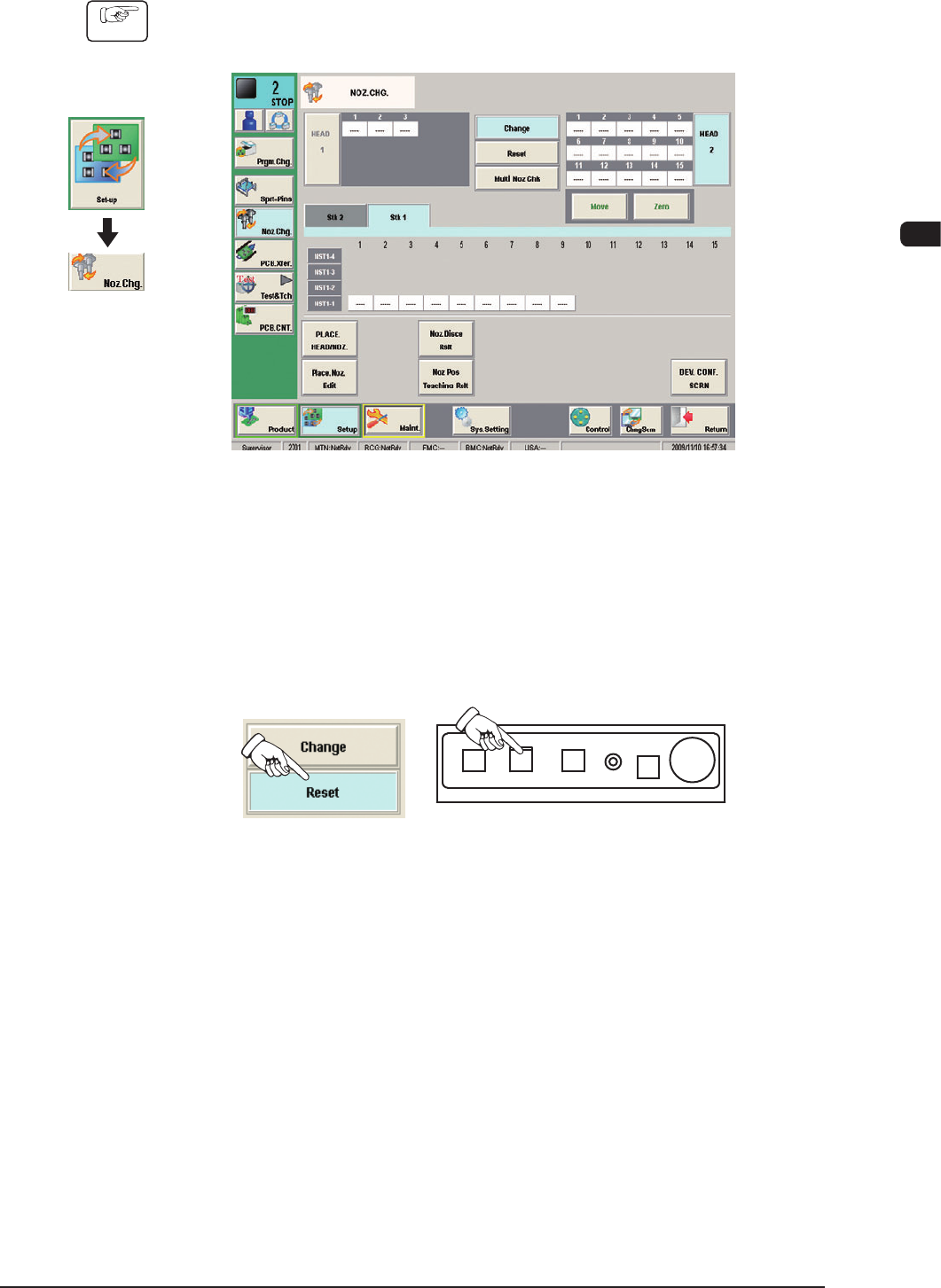 (1) Press the [Noz Chg] button in the submenu on the [Setup] window.
