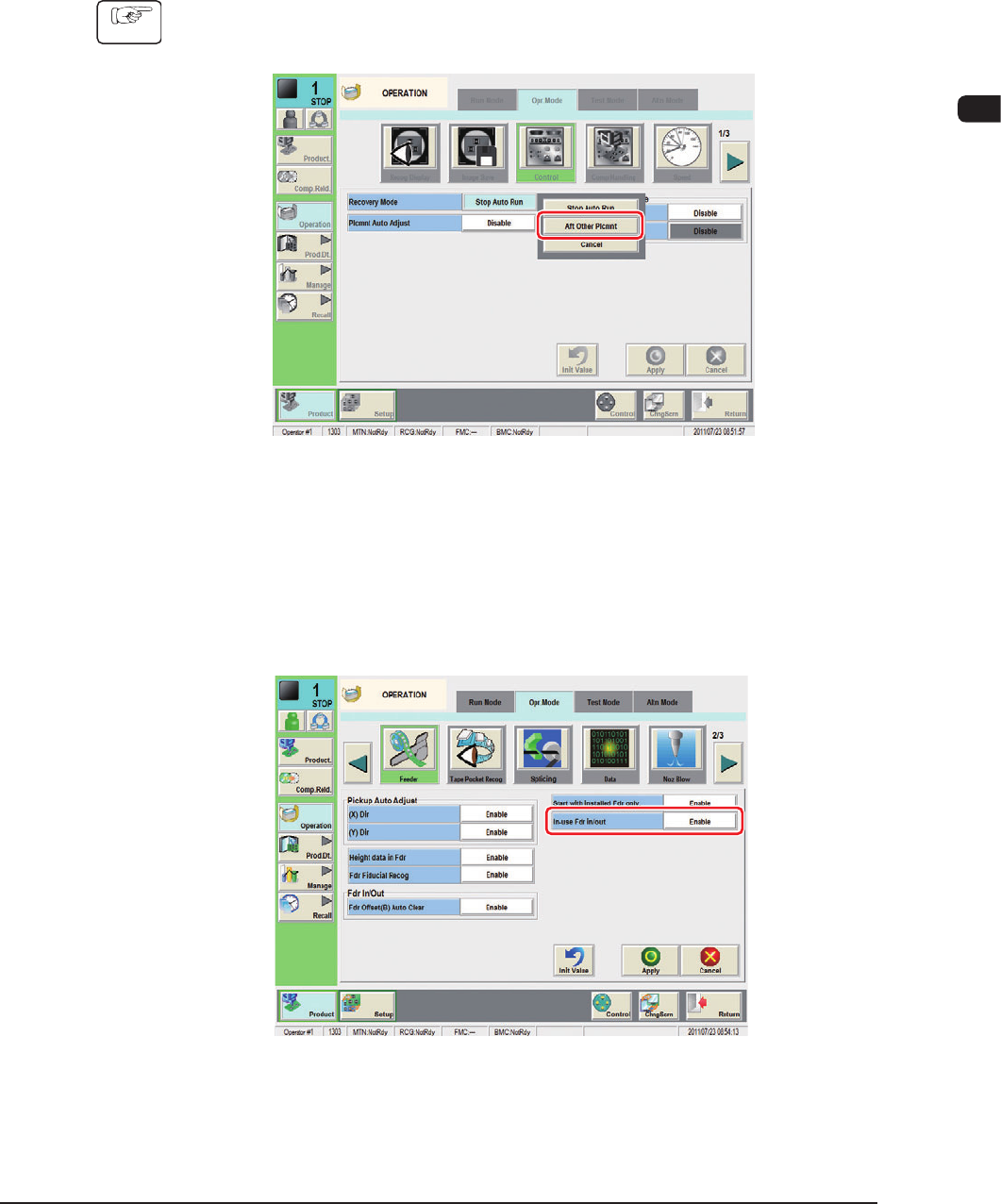 (4) Select "Enable" in the "In-use Fdr in/out" selection box and press the [Apply]