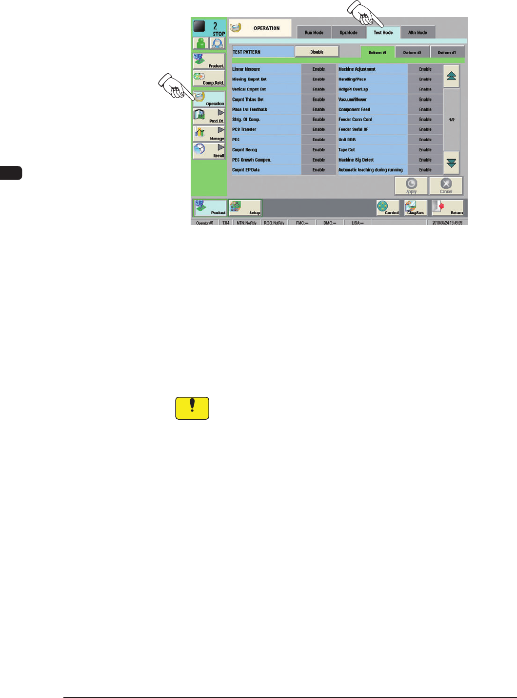 (3) Press one of the pattern buttons for a test run on running-in operation.