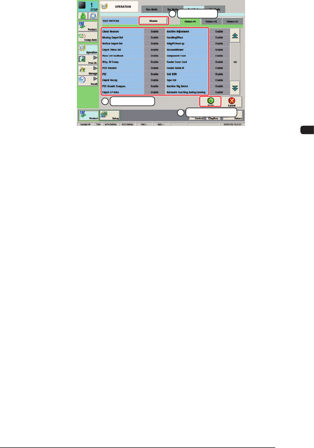 ("TEST RUN: # (Pattern No.)" disappears from the "Status Indicator" eld