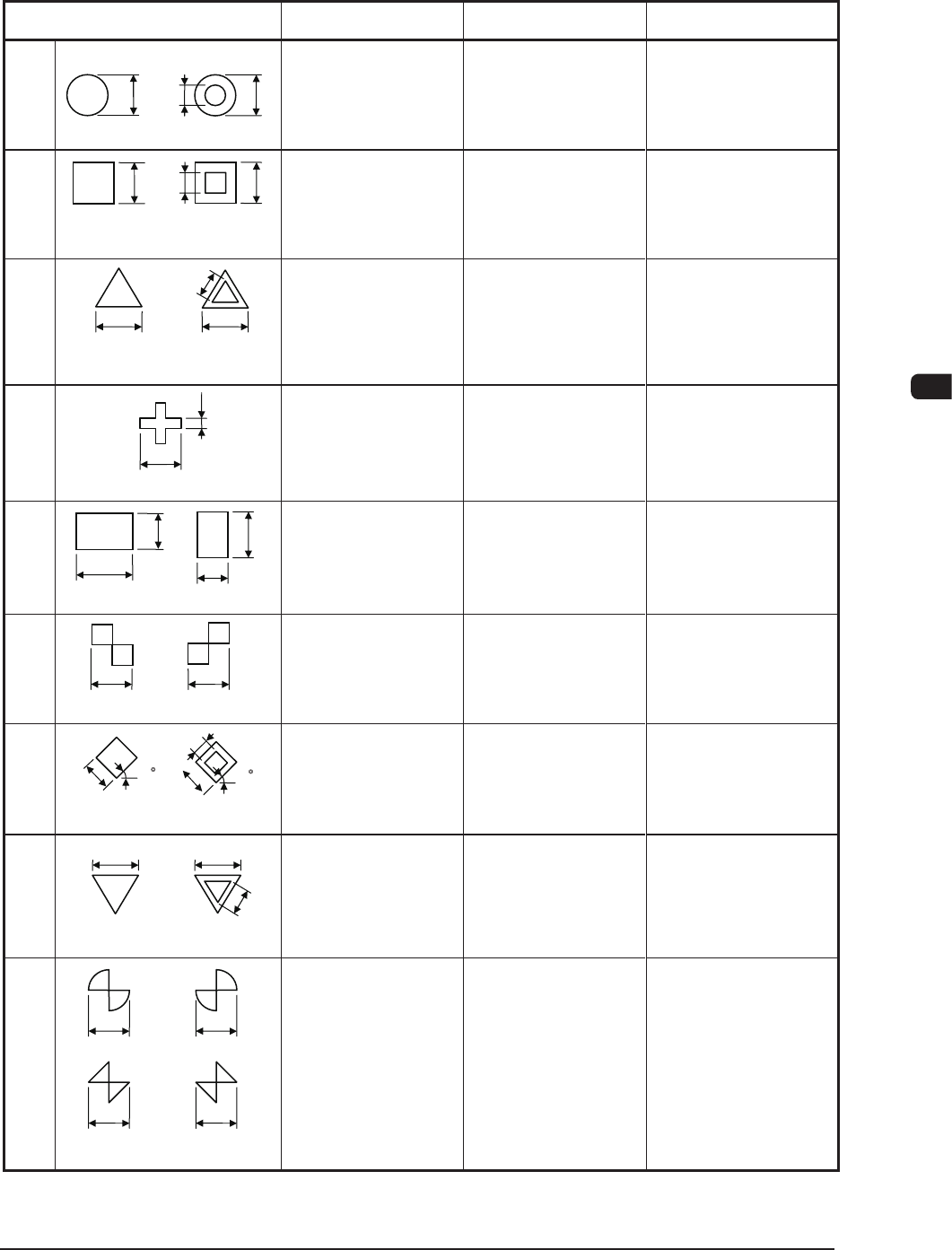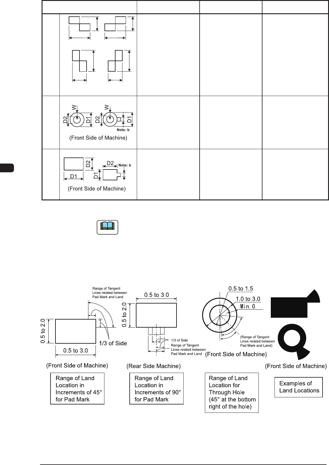1OM-1603 4-19 4. Fiducial Marks : Chap.4 4. Fiducial Marks (1) T ype and Size Mark Type D1 [mm] D2 [mm] Remarks d n u o R 0.3 to 3.0 0 to 2.8 (D1 - 0.2 = > D2) • Mark Reference : Cente r • D2 : Size of a punched hole …