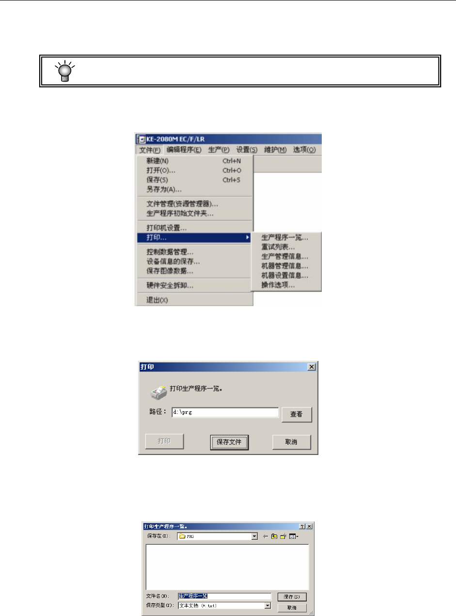 可打印“生产程序一览”,“重试列表”,“生产管理信息”,“机器管理信息”,“机器设置