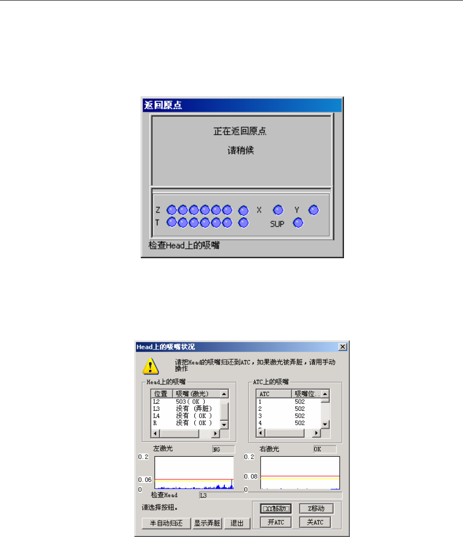 执行此画面中附着在贴片头上的吸嘴归还 ATC 的操作。