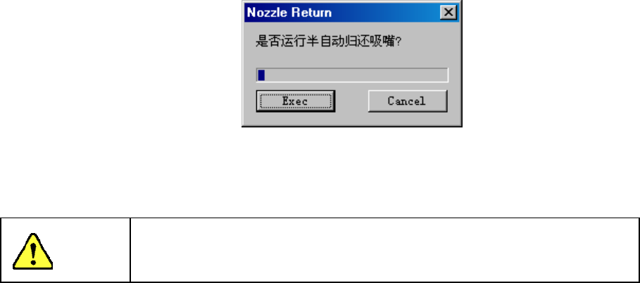 “半自动方式”:按半自动归还按钮,实行归还吸嘴的操作。