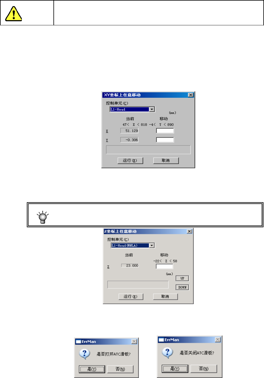 单击[运行]或[OK]后,为了归还吸嘴,轴会移动。单击以前,请务必确认设