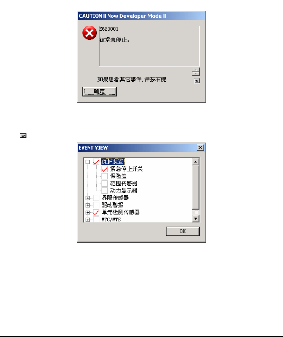 打开安全盖、按下紧急停止开关、或检测到各轴的伺服驱动的警报等时,显示类似如下画面。