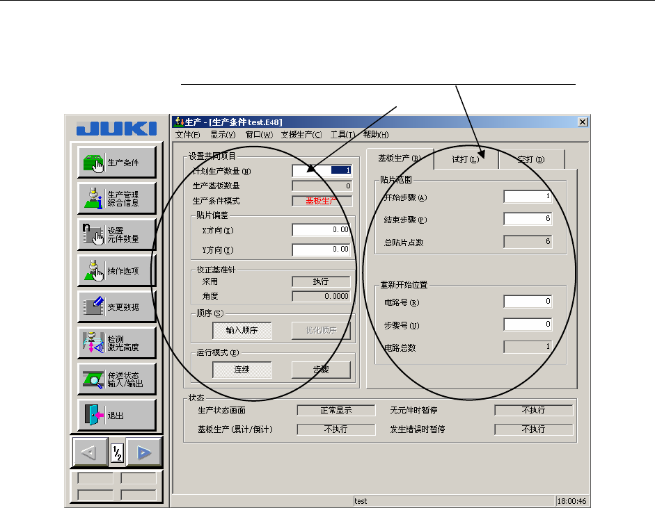 根据“基板生产”、“试打”、“空打”各种生产模式,分别设定各自的生产条件。