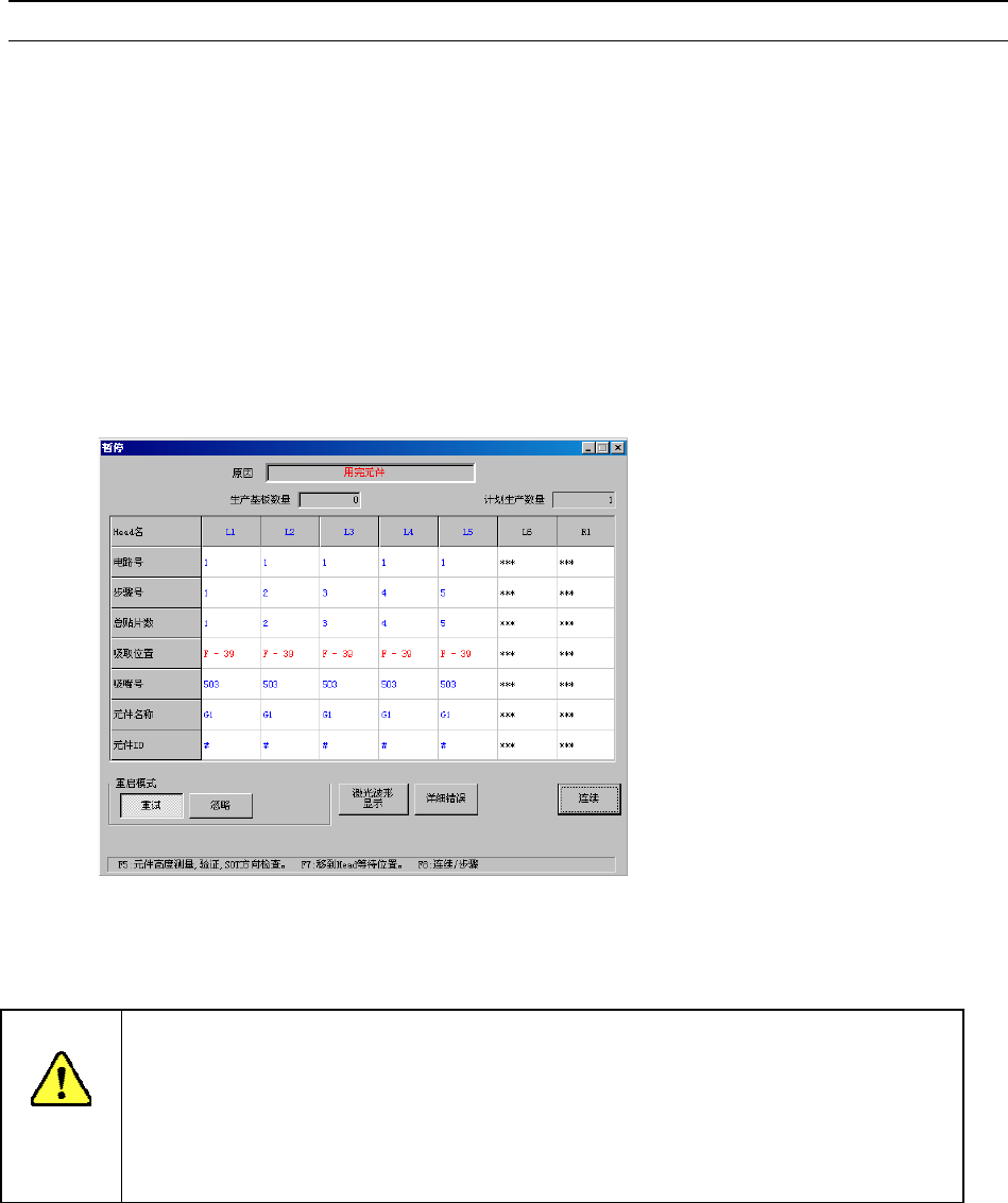 但是,若已选中操作选项中的“无元件供给时暂停”,则显示如图2.11.1.1的画面,则机器