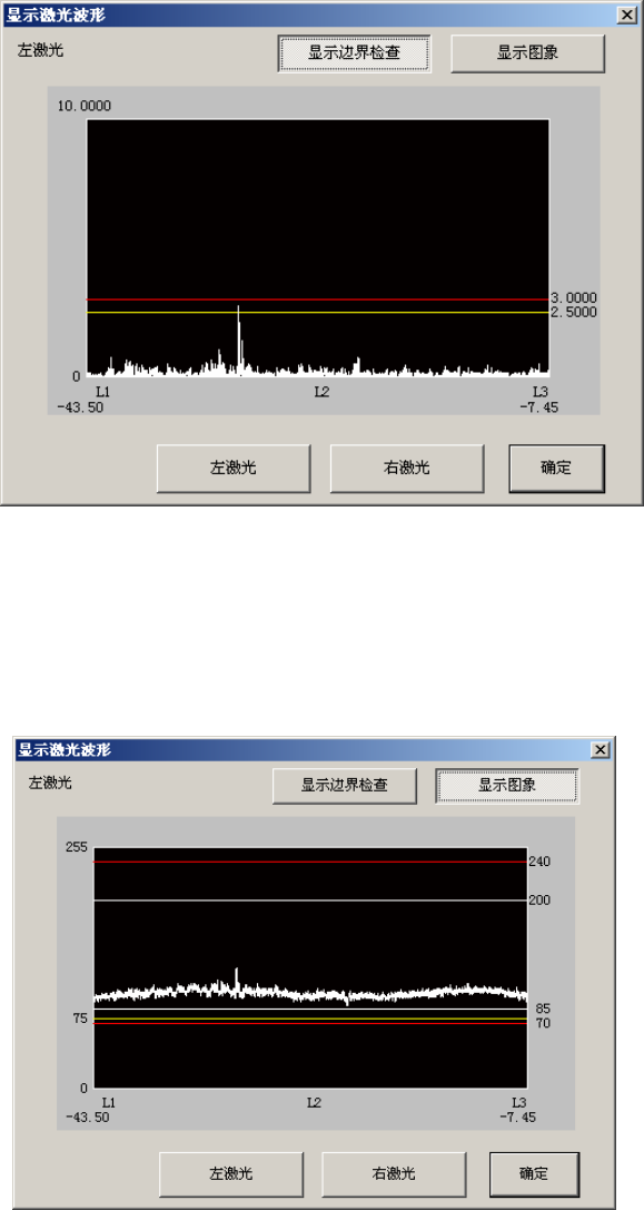 按下“左激光”按钮,可显示左激光的图像波形的结果。