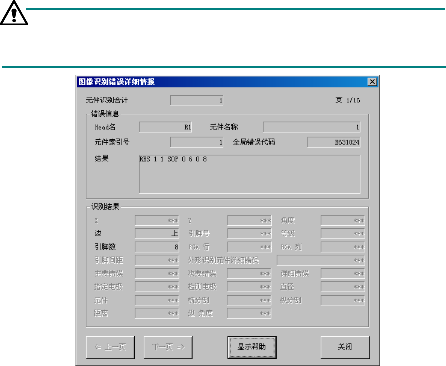 单击[取得图像识别信息]按钮,取得图像识别信息后,会显示如下的[图像识别错误详细情报]
