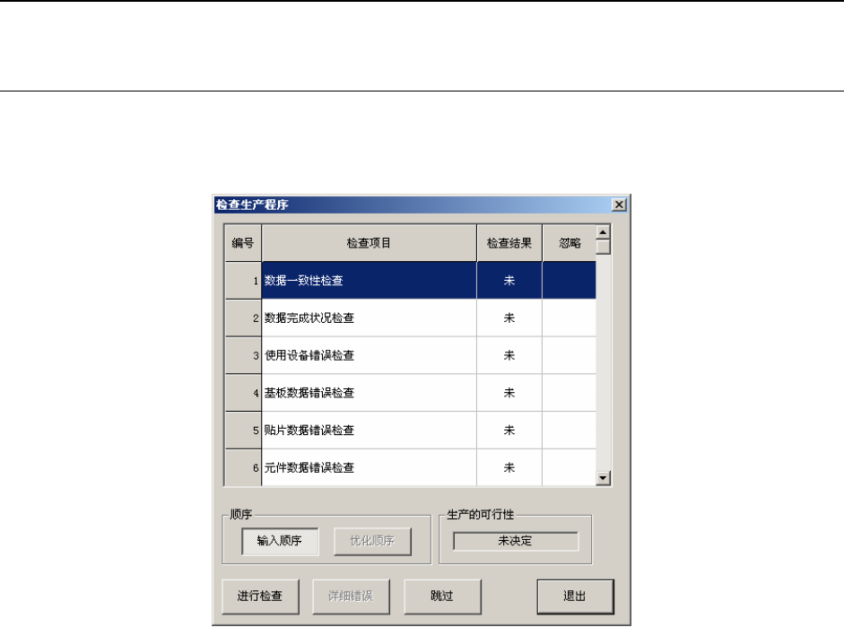 按下“进行检查”按钮,生产程序的检查将对略过检查项目以外的项目进行检查,其结果反