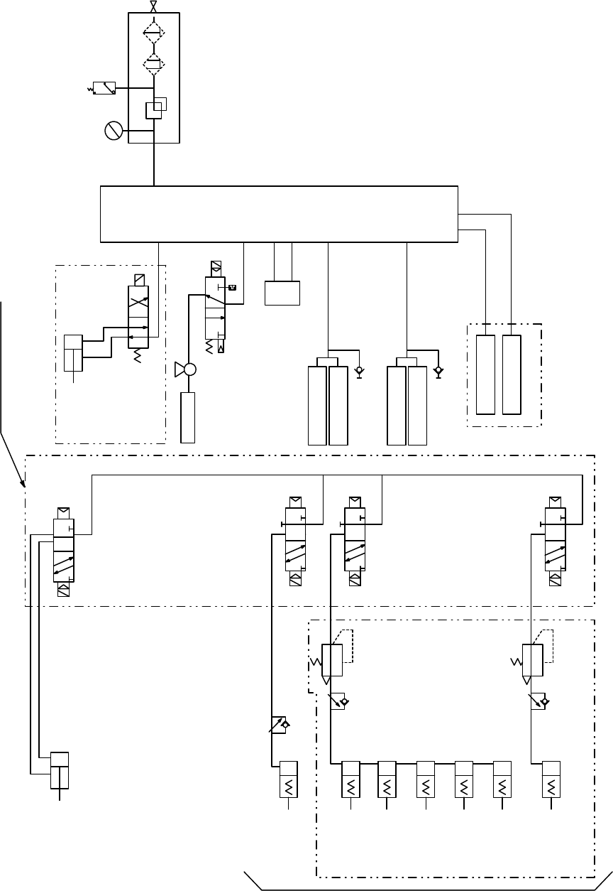 第 1 部 基本篇 第 3 章 维护 3 -4 1) 请确认没有漏气 1) 主机接通电源后,请选择「手动控制」项目,检查下列各项目的动作状况。 ① 基板挡销部 ② 夹杆 X、夹杆 Y ③ ATC 单元 ④ VCS(附有选项时) ✎ 手动控制 ✎ 在确认各项动作、检查传感器的开/关情况时,执行手动控制模式。 有关手动控制的详细内容,请参见(取扱説明書「第 9 章 手动控制」)。 2) 如若动作有问题,请参考下页「配管系统图」进行检查。 检…