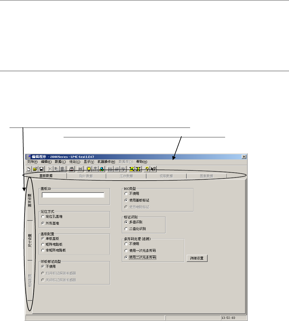 切换基板数据/贴片数据/元件数据/吸取数据/图象数据。
