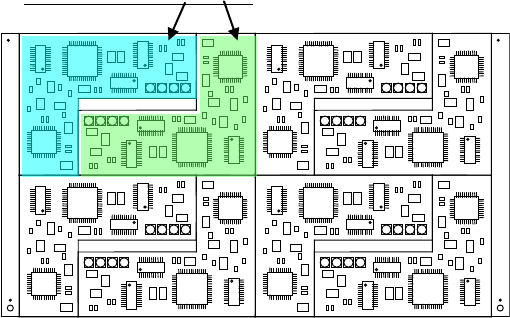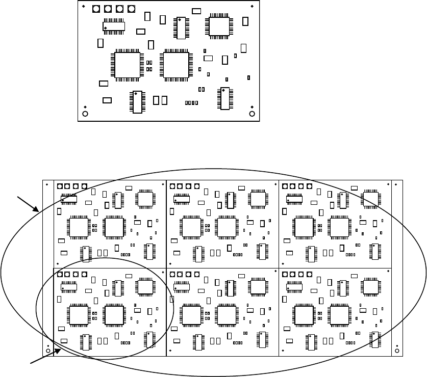 ◆ 矩阵电路板: 如图所示,是指在一块基板上,存在多个电路,所有电路的角度相同,
