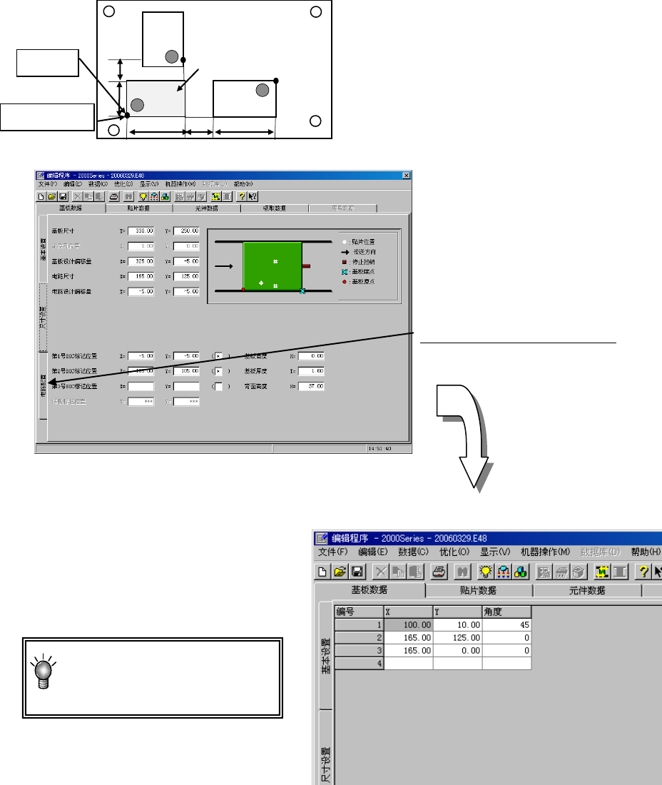 输入与贴片元件的贴片坐标有关的信息。