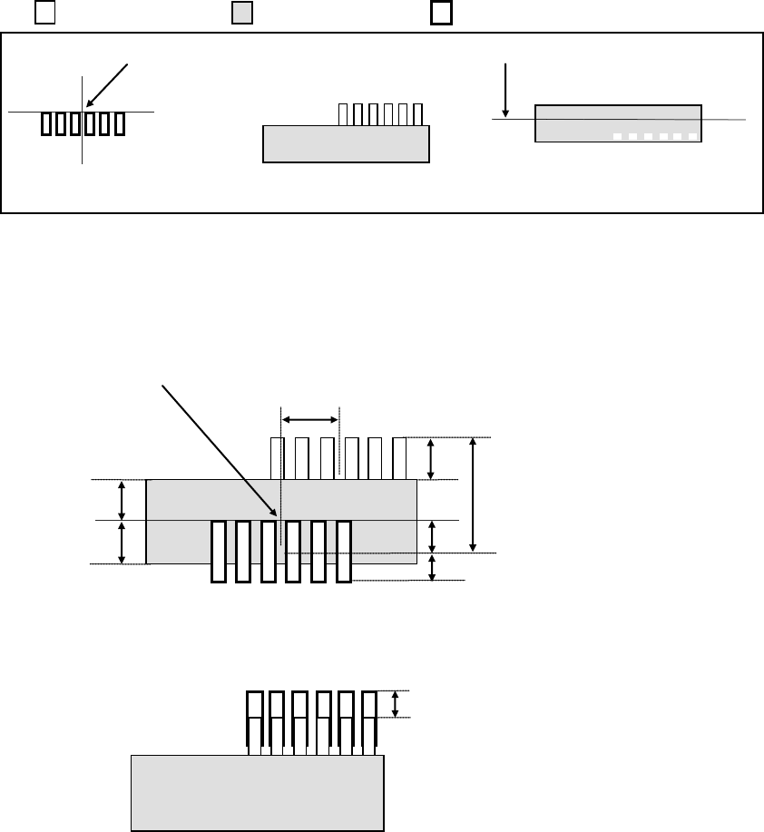 第 1 部 基本篇 第 4 章 制作生产程序 例 2) 以下面的元件为例, 输入偏移值。 数值的单位为 “ mm( 毫米 ) ”。 ( ( 无色 ) ⇒ 引脚 部、 ( 带颜色 ) ⇒ 模部、 ( 粗线 ) ⇒ 图案 ) 贴片坐标点 激光高度 基板上的图案 从上面看元件时 从横向 ( 近前 方向 ) 看元件时 因贴片坐标点和激 光定中心的中心位置不同 ,如这样贴片,会发生贴 片偏差。因此,请 将贴 片坐标点和激光 定中心的中心位置的 偏…