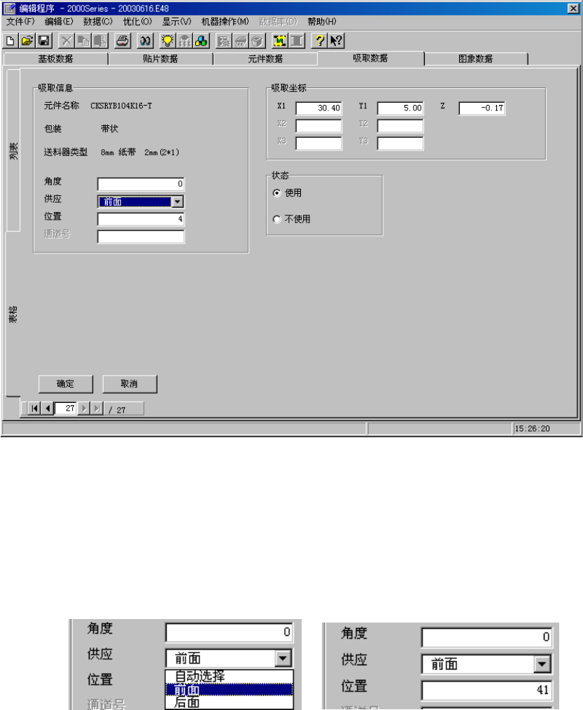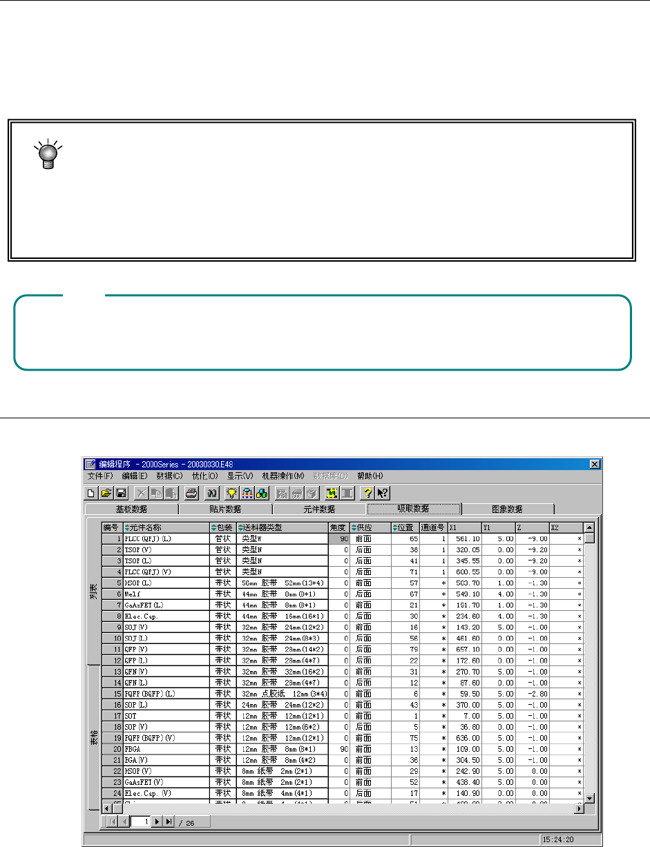 数据中的吸取坐标。因此,如果读入其他机种的生产程序时,务必再确认吸取坐标。